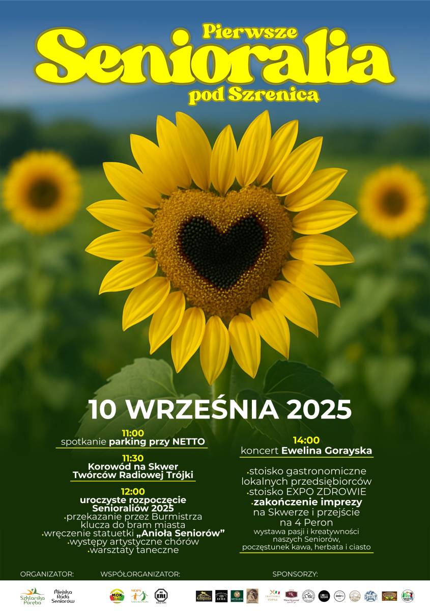 12:00 – uroczyste rozpoczęcie Senioraliów 2025 - występy artystyczne chórów, warsztaty taneczne, wręczenie statuetki „Anioła Seniorów”