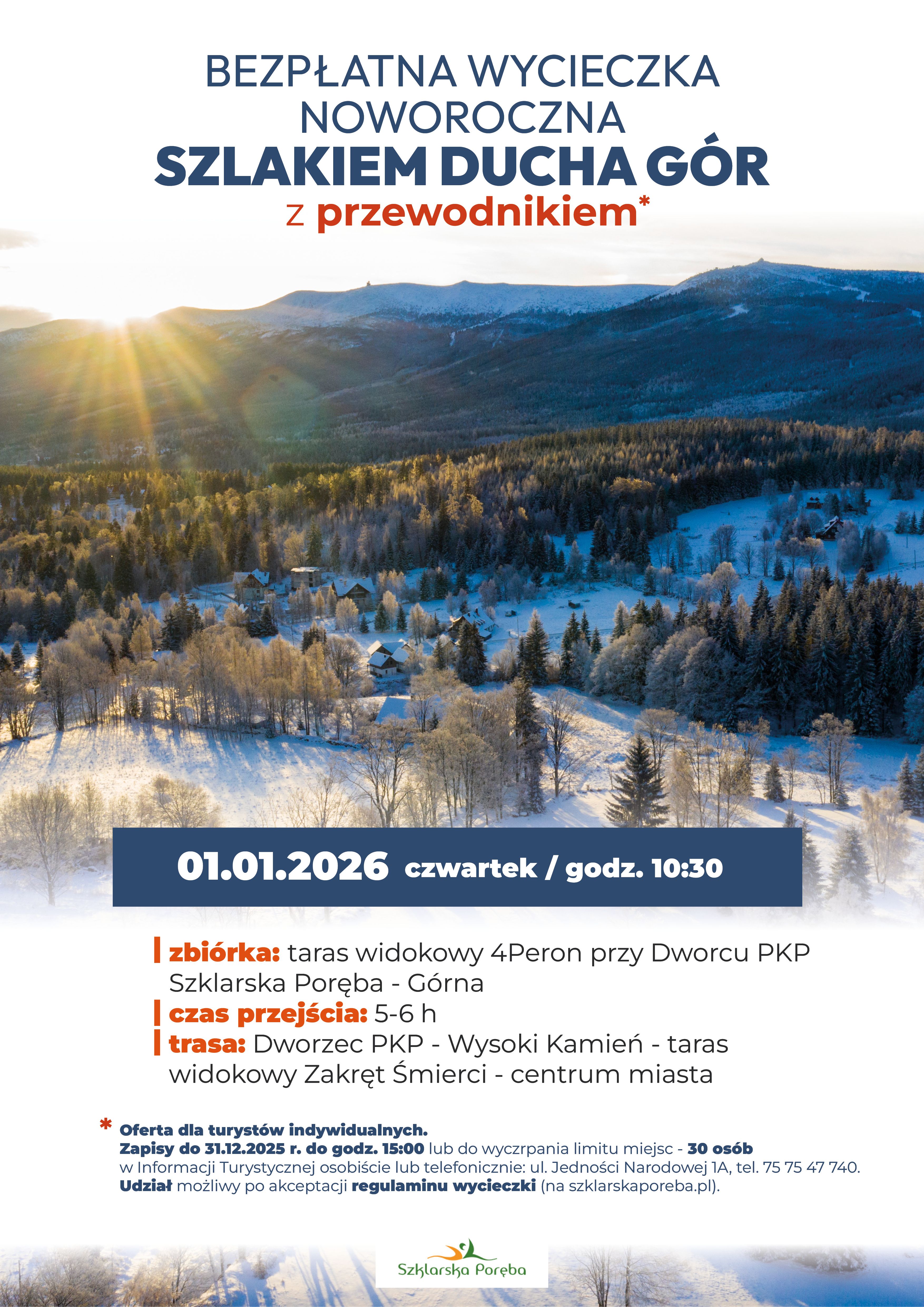 Zapraszamy na bezpłatną wycieczkę noworoczną SZLAKIEM DUCHA GÓR z przewodnikiem!