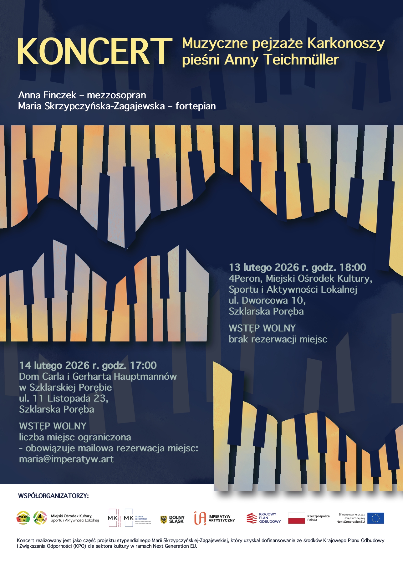 Koncert realizowany jest jako część projektu stypendialnego Marii Skrzypczyńskiej-Zagajewskiej, który uzyskał dofinansowanie ze środków Krajowego Planu Odbudowy i Zwiększania Odporności (KPO) dla sektora kultury w ramach Next Generation EU.