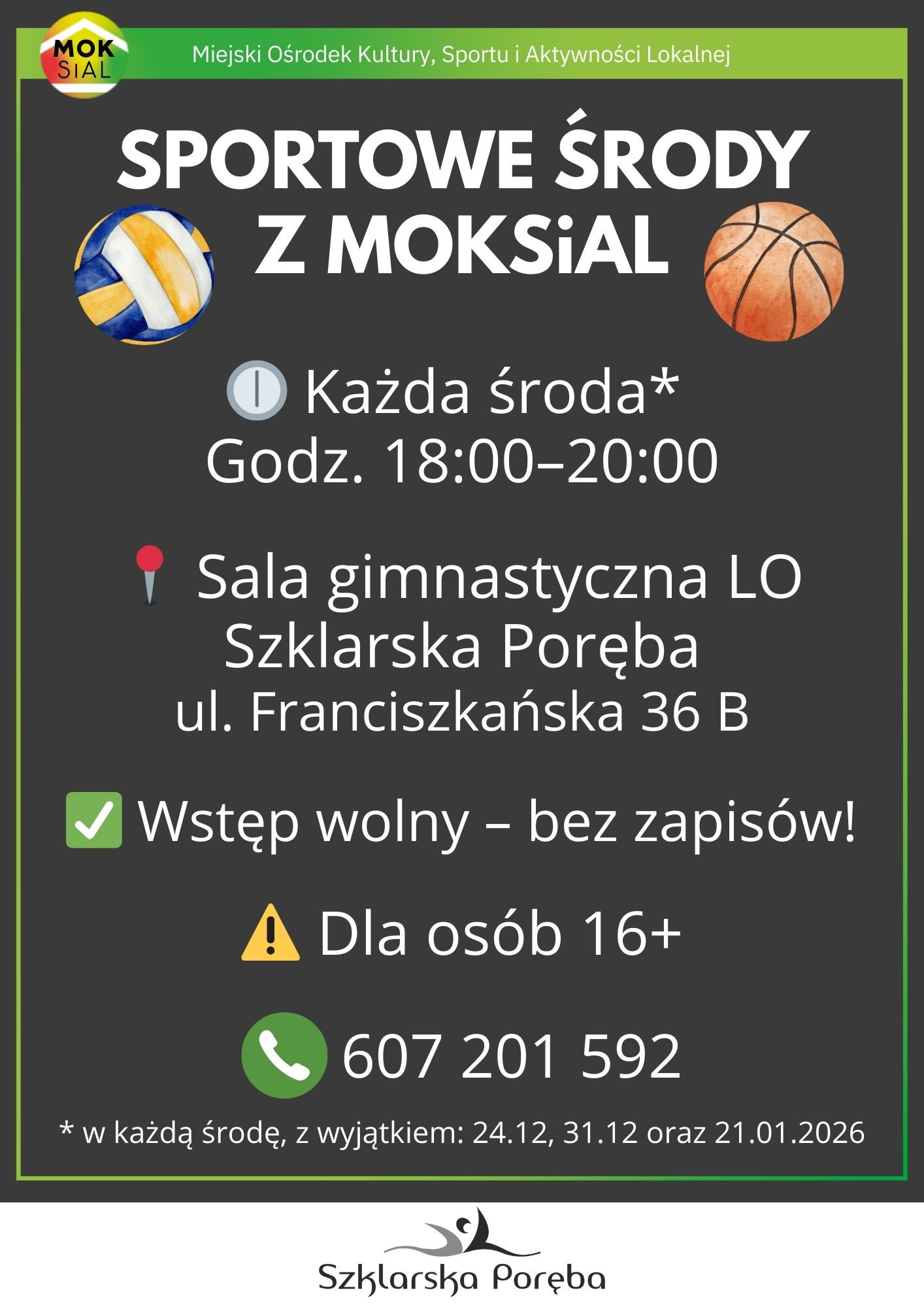 Zapraszamy w każdą środę w godz. 18:00–20:00 do sali gimnastycznej SP5 w Szklarskiej Porębie (ul. Obrońców Pokoju 17).